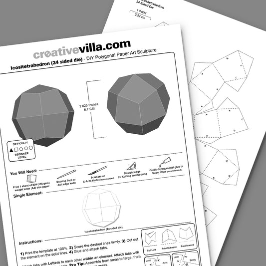 Icositetrahedron - 24 sided dice DIY Low Poly Paper Model Template, Paper Craft
