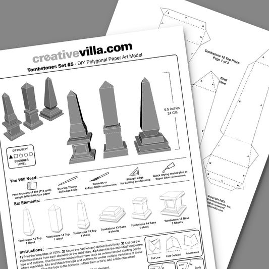 Tombstones Set 5 DIY Low Poly Paper Model Template, Paper CraftRegular price $2.49 USDRegular priceUnit price per-