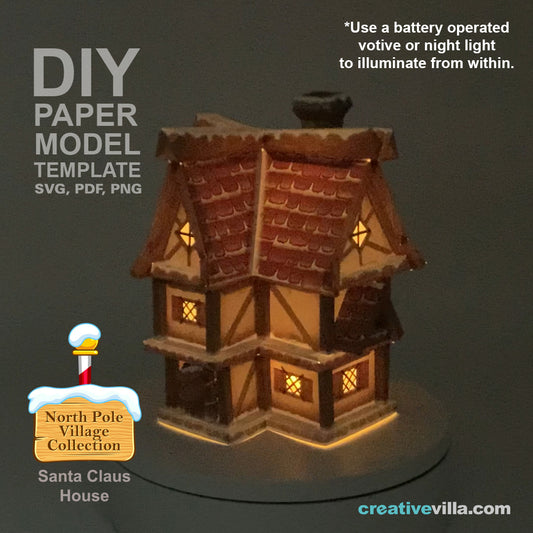 North Pole Village - Santa Claus House - DIY Polygonal Paper Art Model Template, Paper Craft