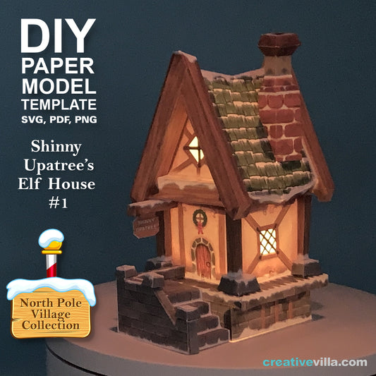 North Pole Village - Shinny Upatree's Elf House #1 - DIY Polygonal Paper Art Model Template, Paper Craft