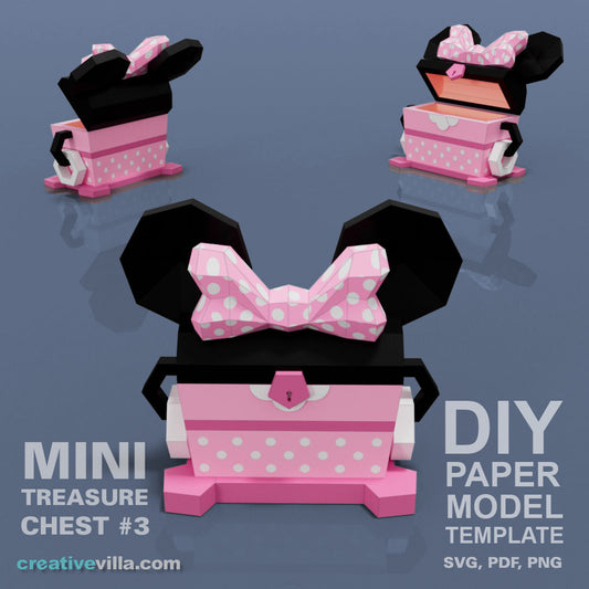 Mini Treasure Chest #3 - DIY Polygonal Paper Art Model Template, Paper Craft