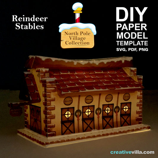 North Pole Village - Reindeer Stables - DIY Polygonal Paper Art Model Template, Paper Craft