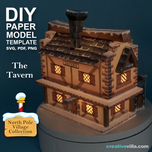 North Pole Village - The Tavern - DIY Polygonal Paper Art Model Template, Paper Craft