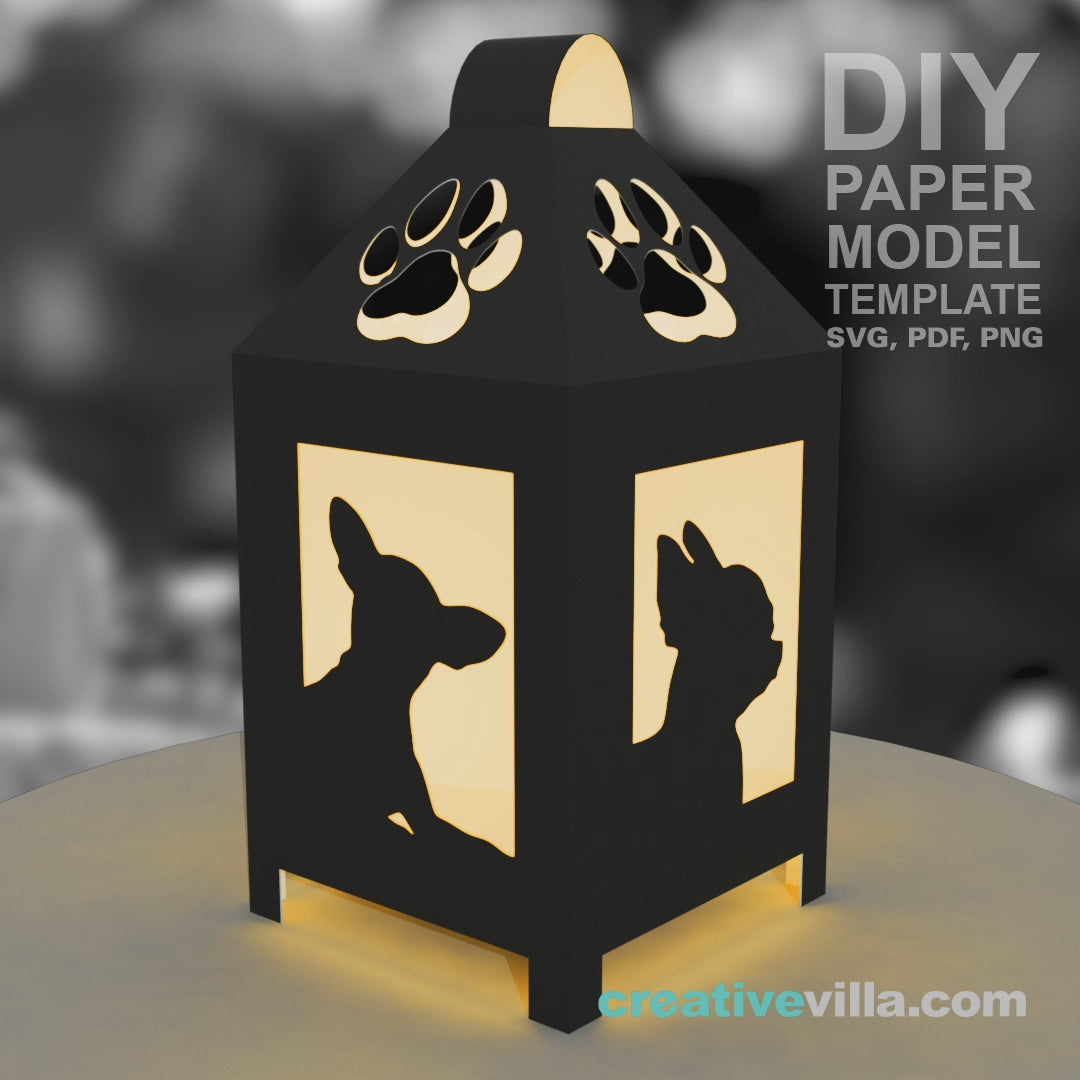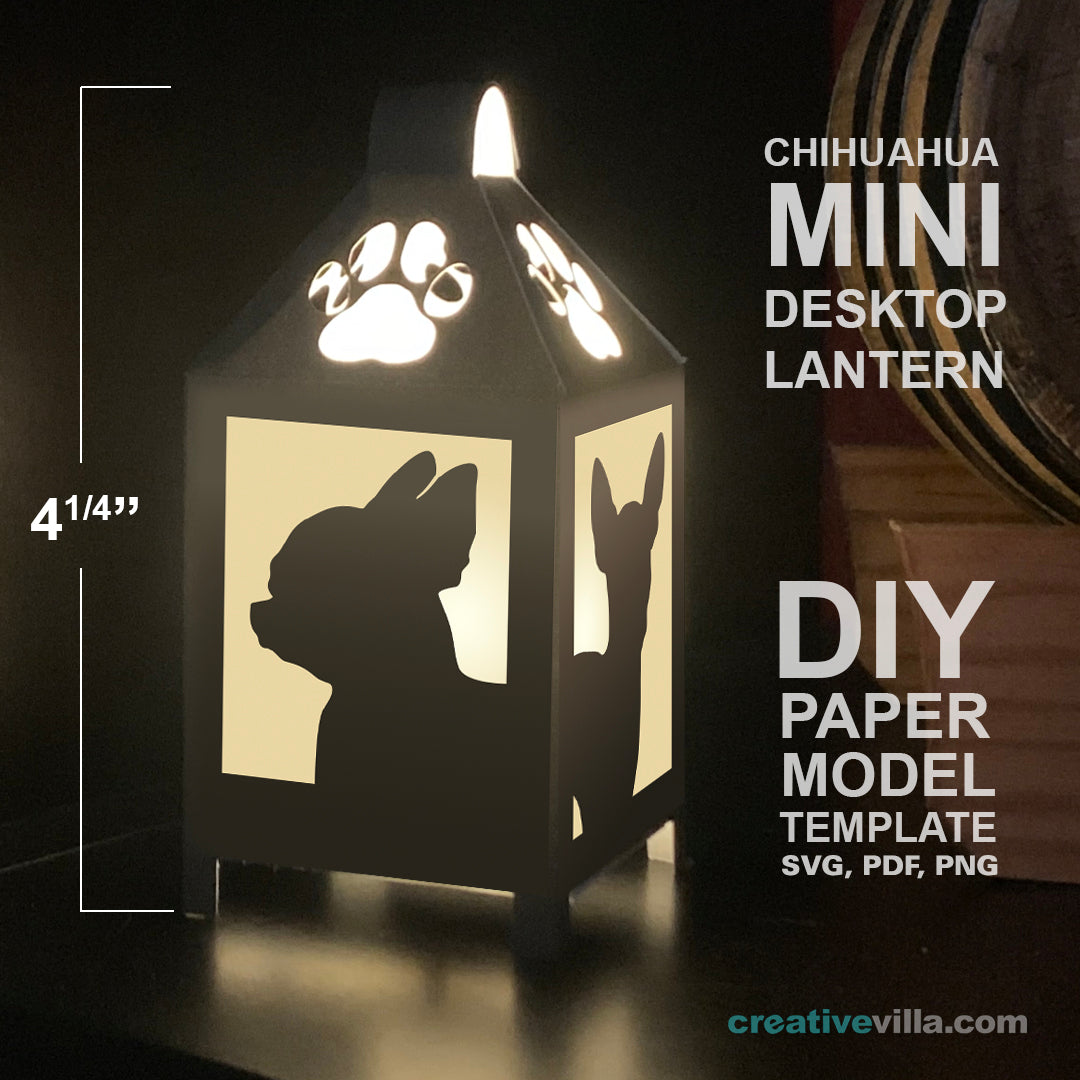 Chihuahua Mini Desktop Lantern DIY Low Poly Paper Model Template, Cricut Paper Craft