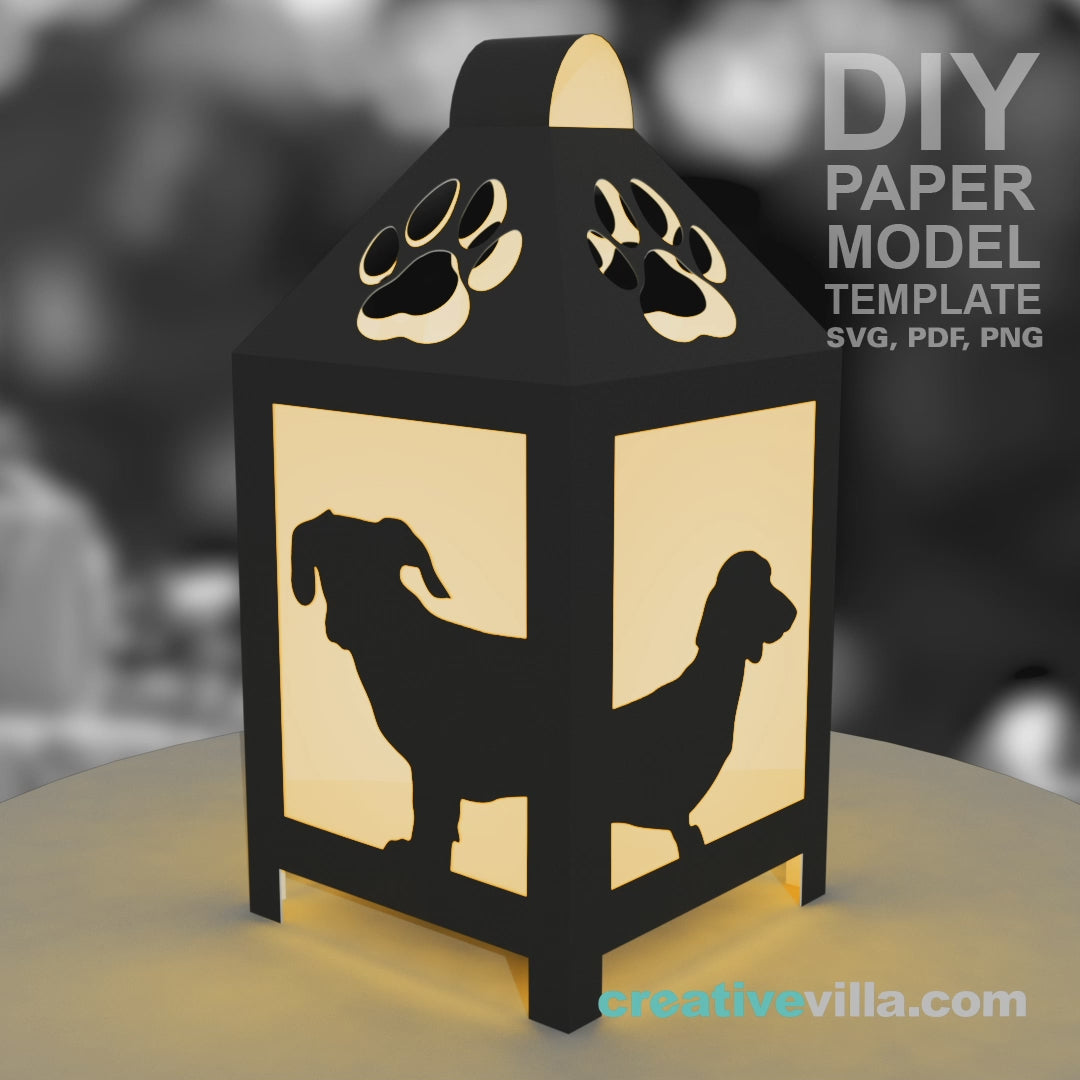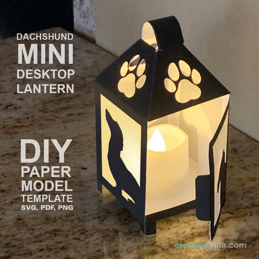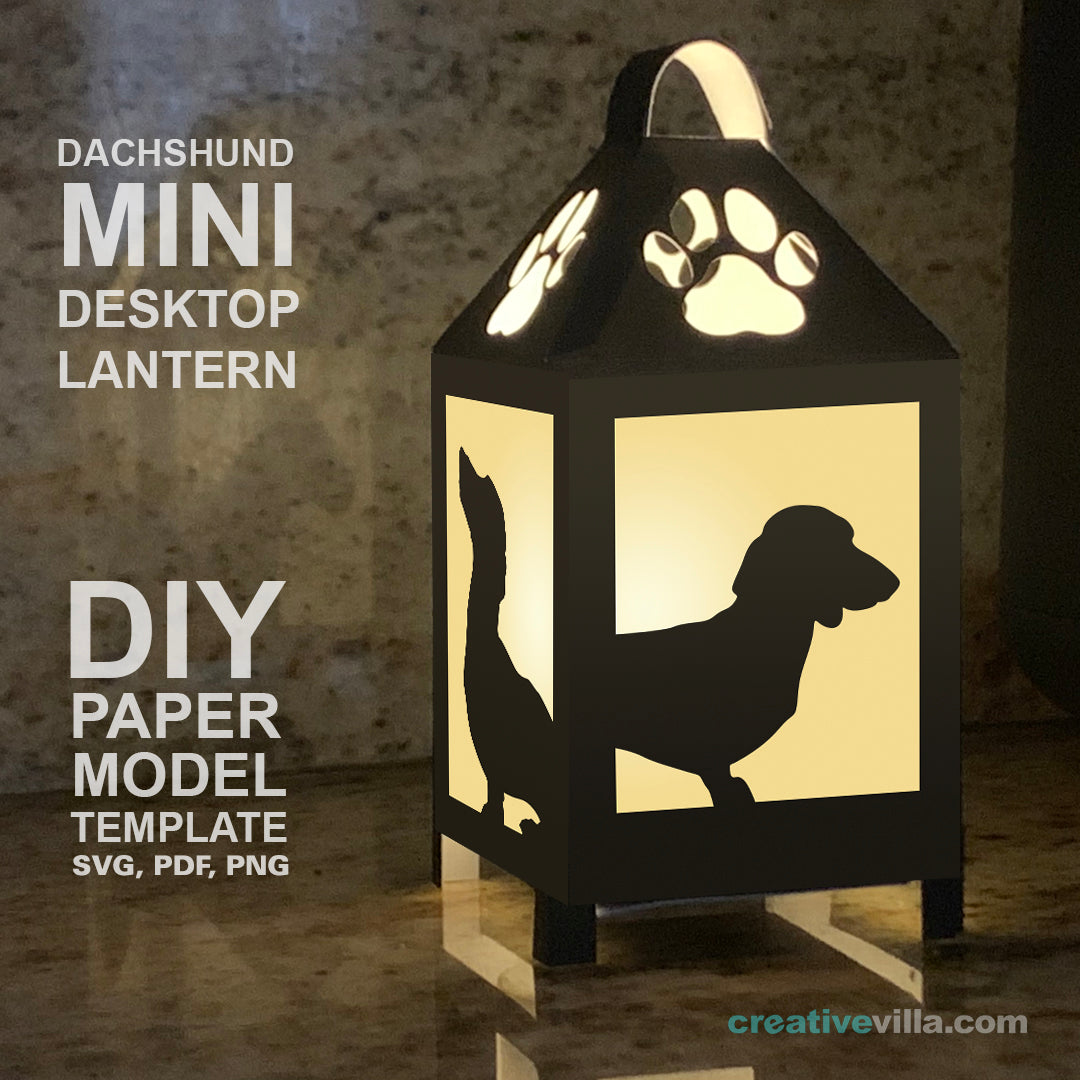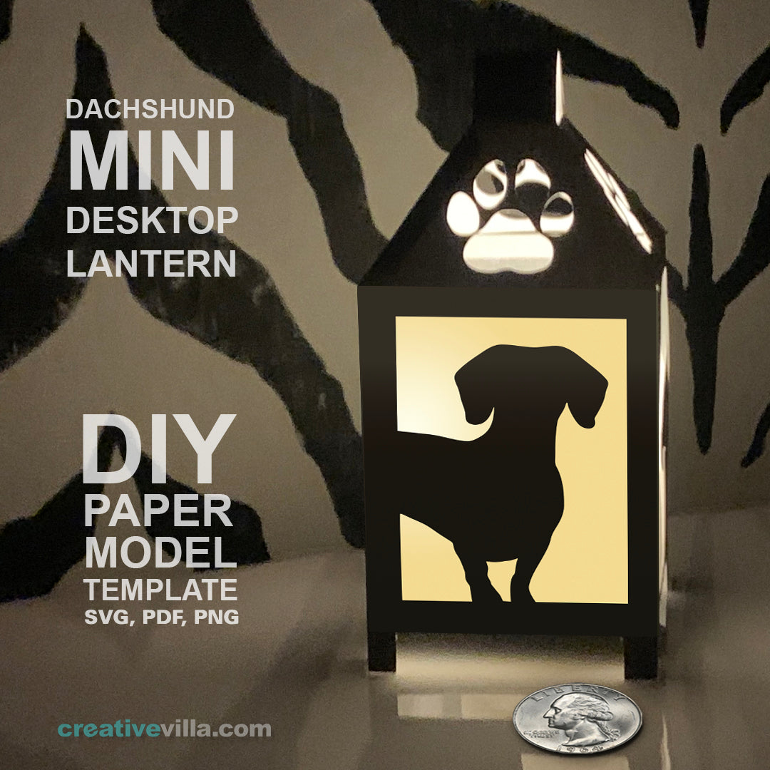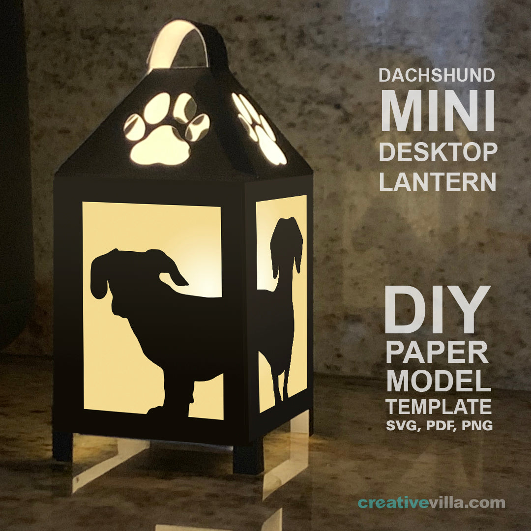 Dachshund Dog Mini Desktop Lantern DIY Low Poly Paper Model Template, Cricut Paper Craft