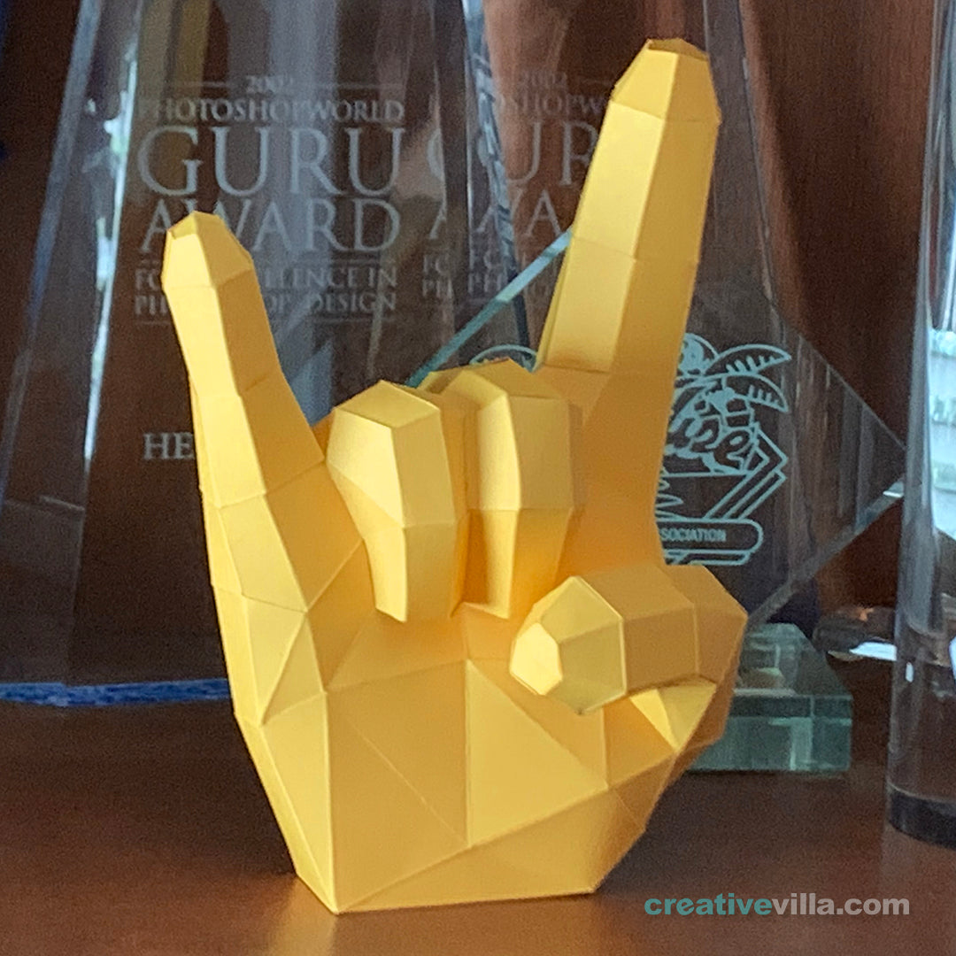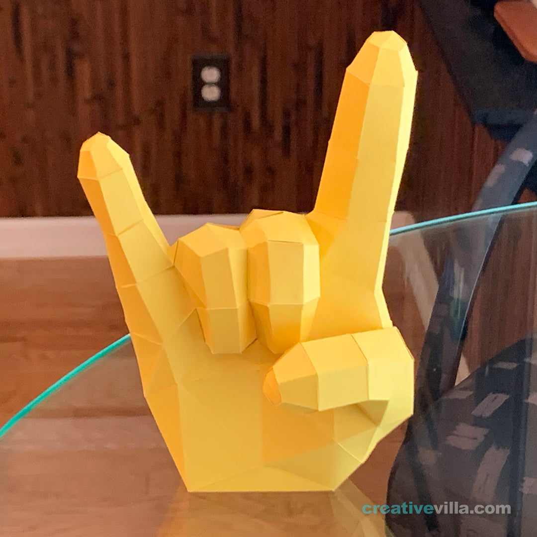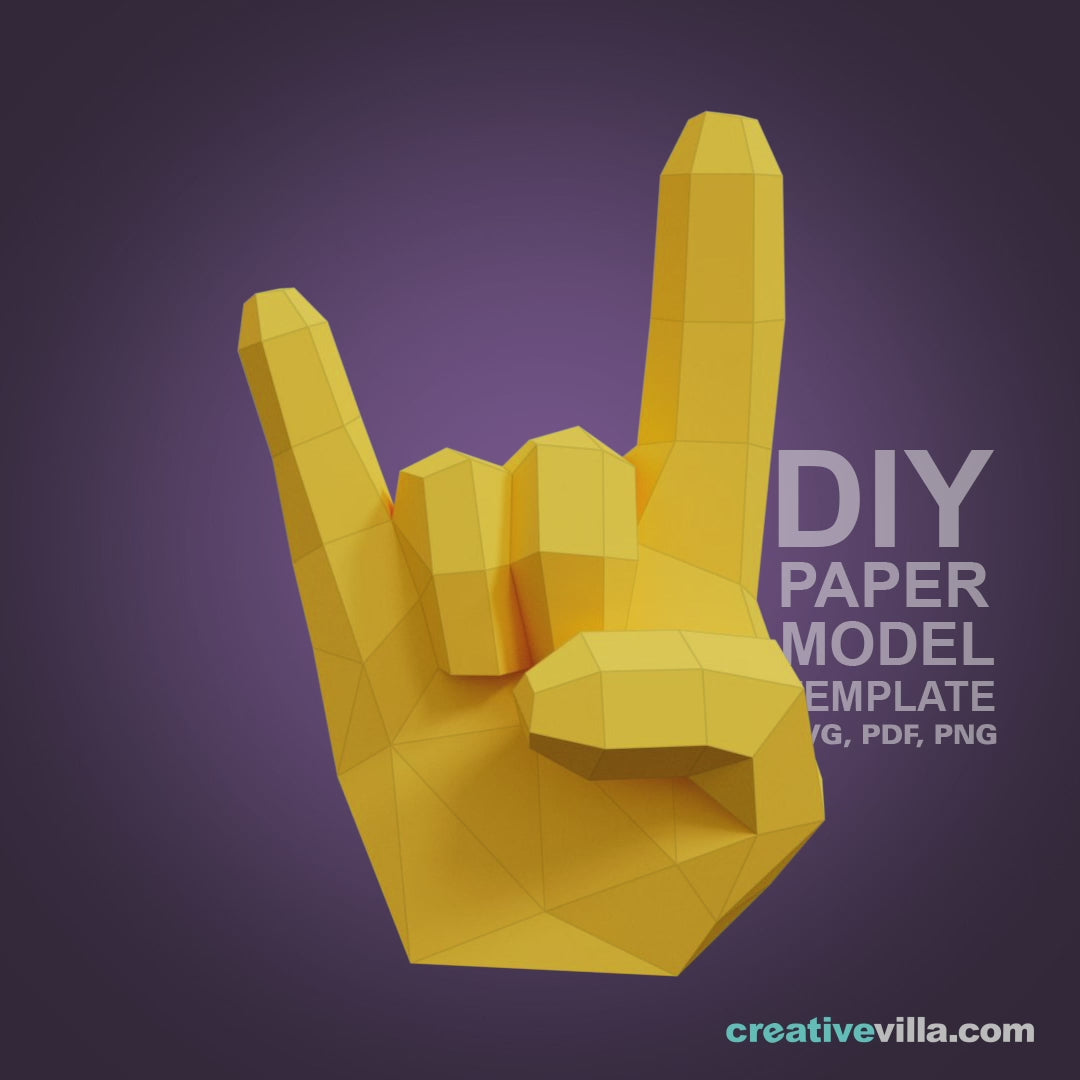 Emoji inspired Hand - Rock On! - DIY Low Poly Paper Model Template, Paper Craft