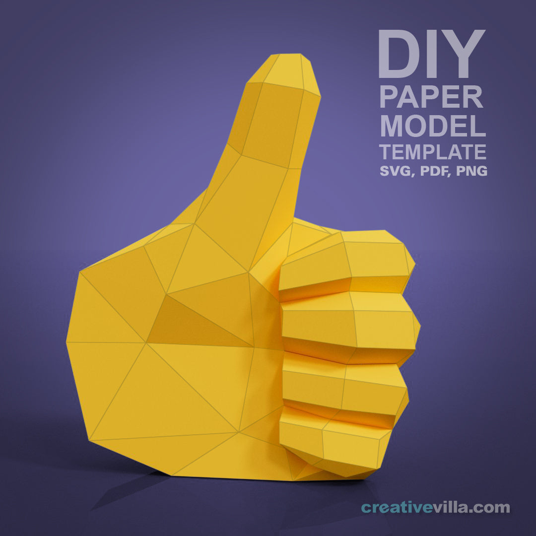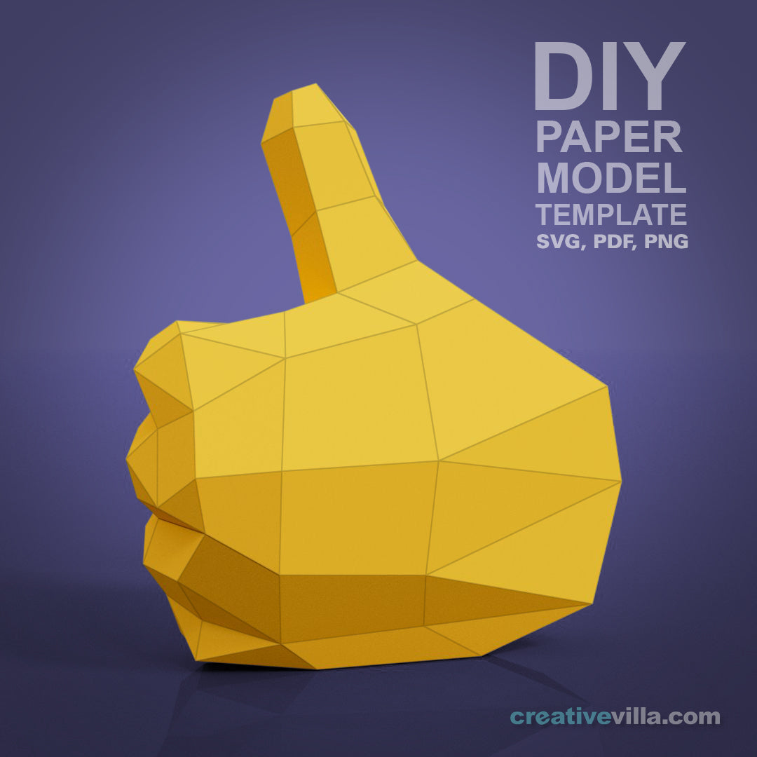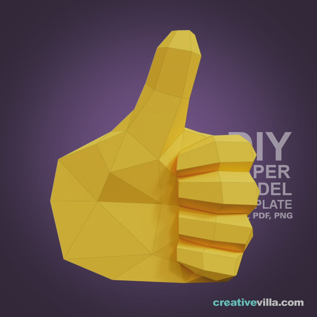 Emoji inspired Hand - Thumbs Up! - DIY Low Poly Paper Model Template, Paper Craft