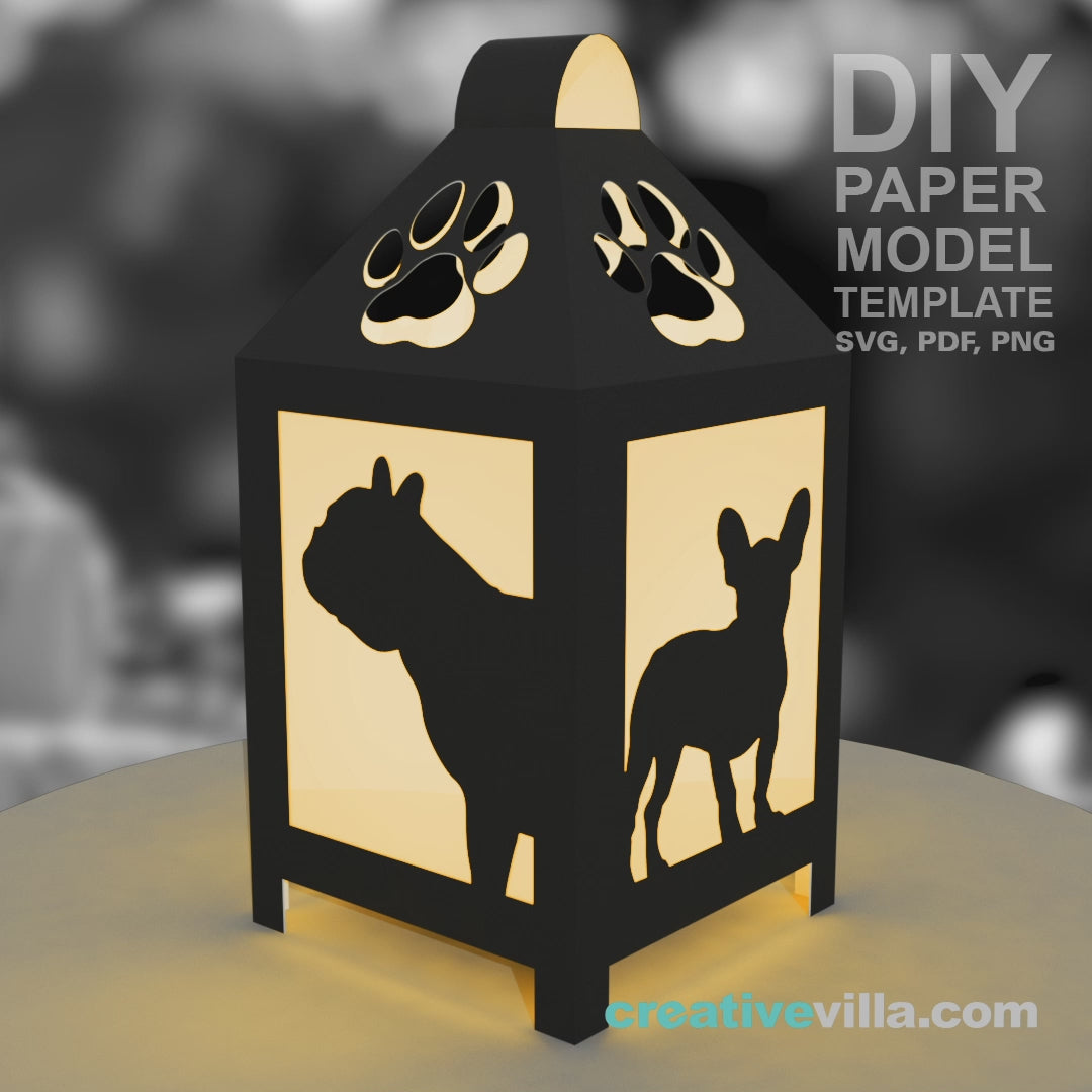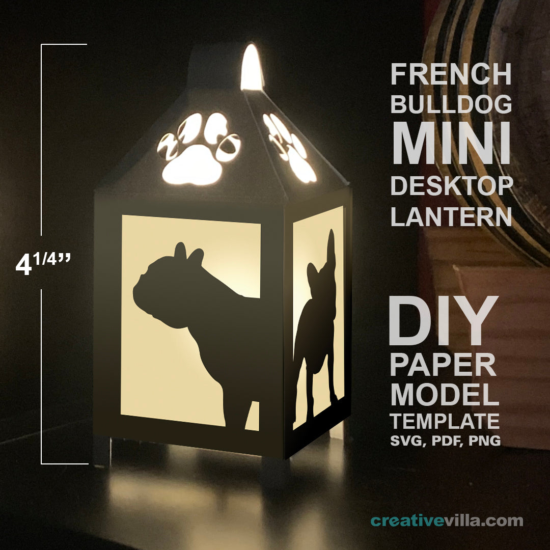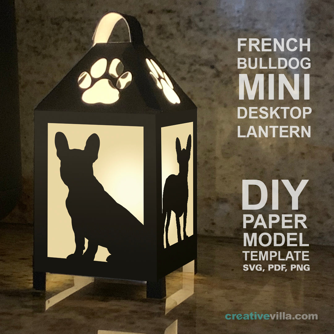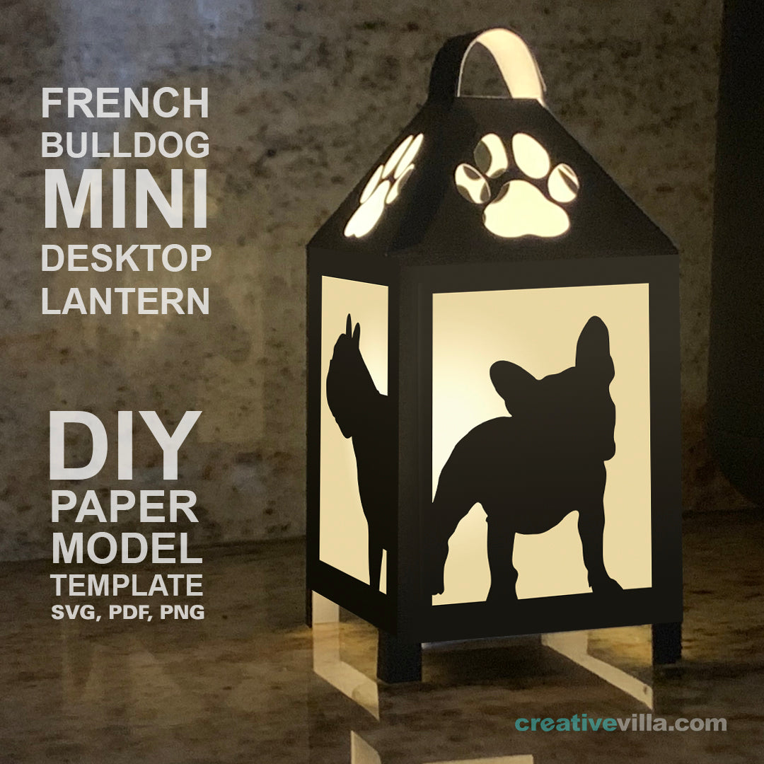 French Bulldog Mini Desktop Lantern DIY Low Poly Paper Model Template, Cricut Paper Craft