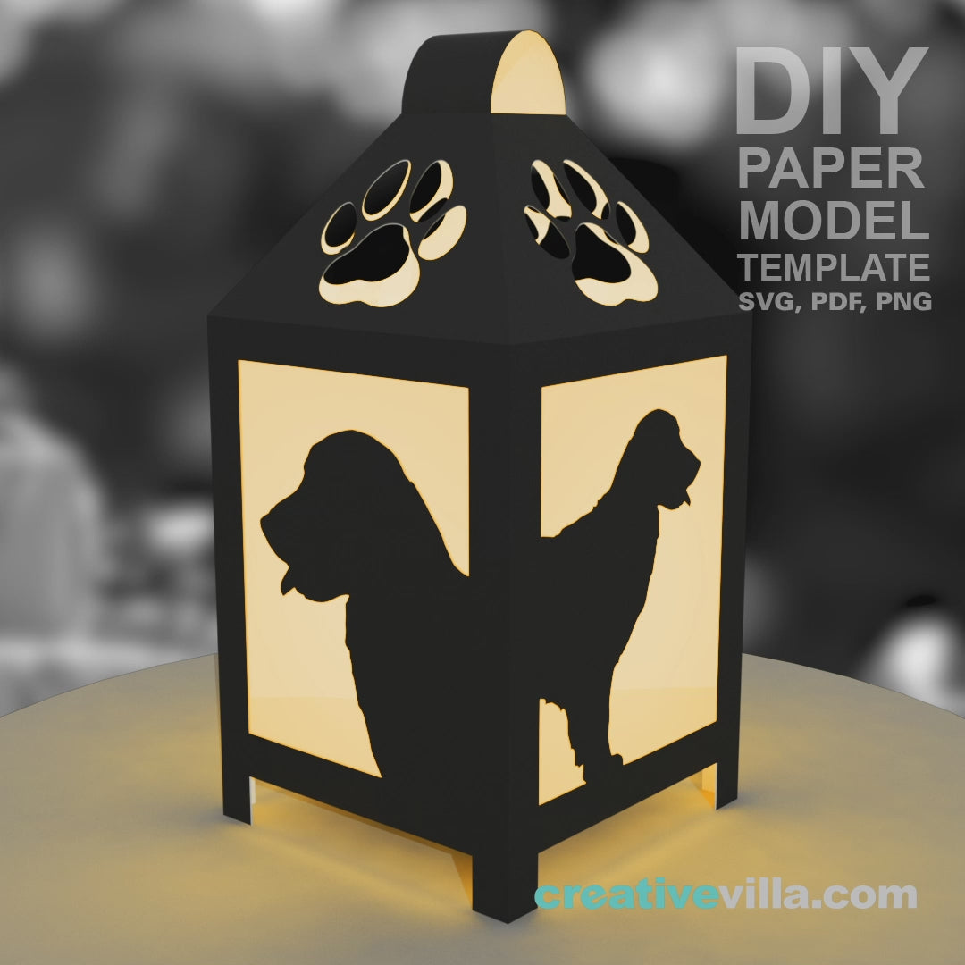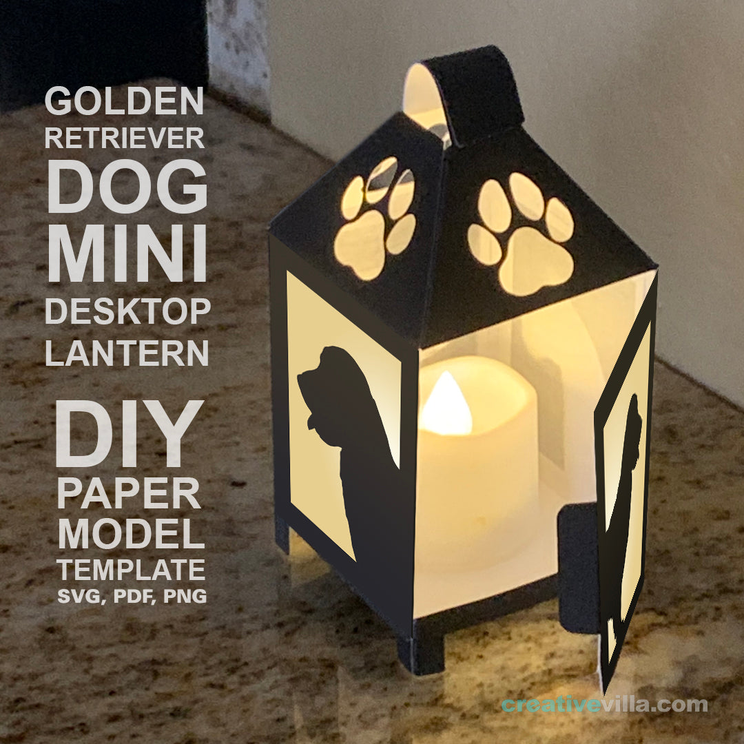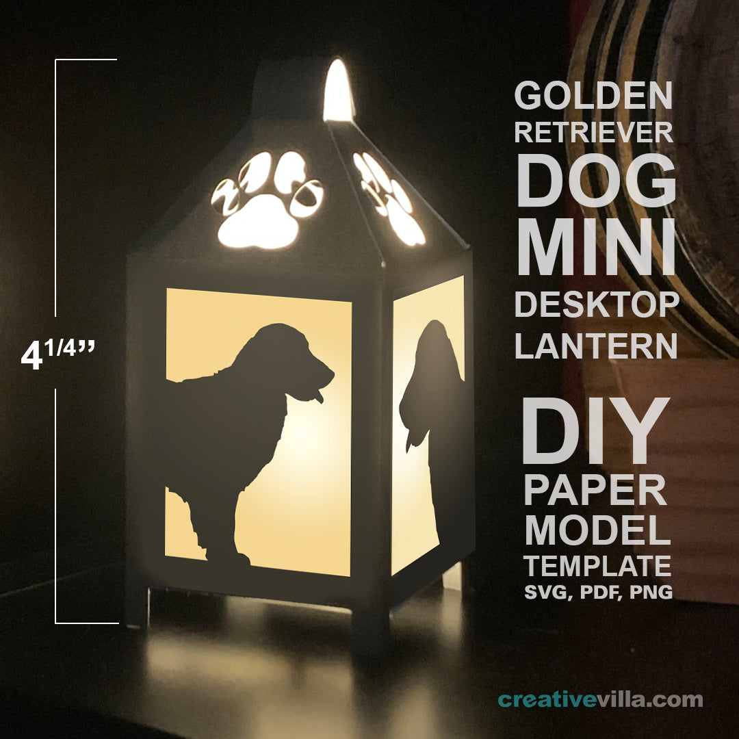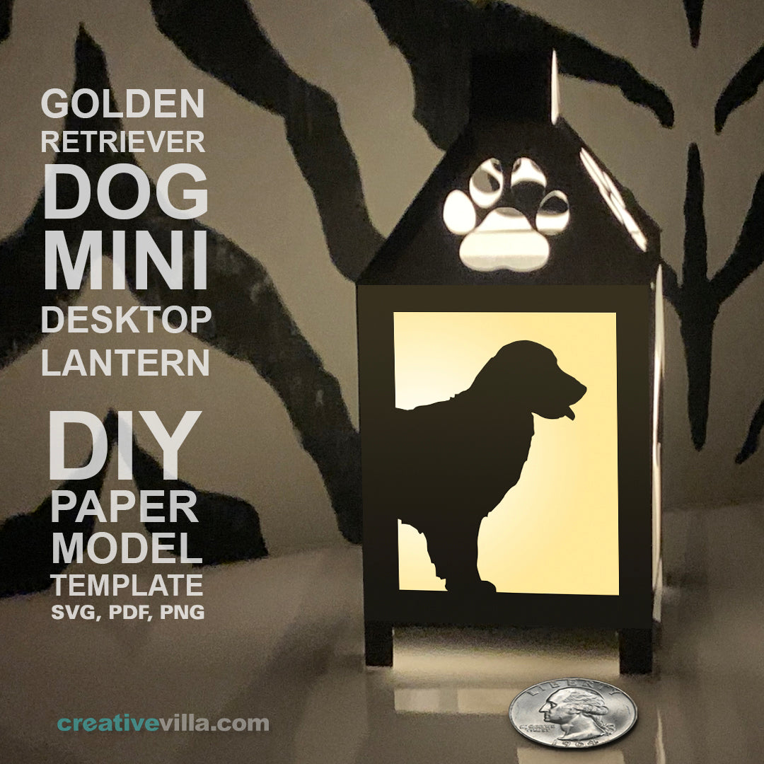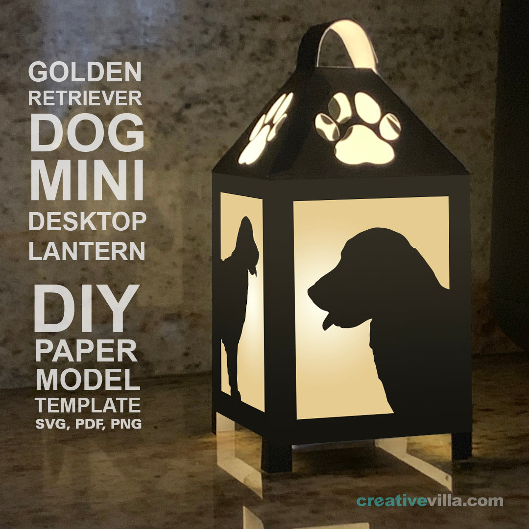 Golden Retriever Dog Mini Desktop Lantern DIY Low Poly Paper Model Template, Cricut Paper Craft