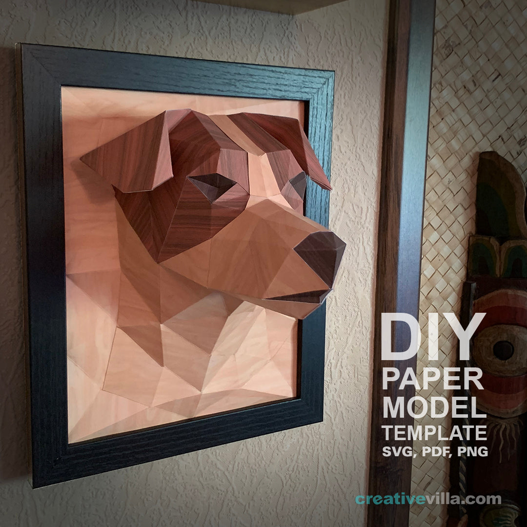 Jack Russel Dog 3D Portrait Wall Sculpture DIY Low Poly Paper Model Template, Paper Craft