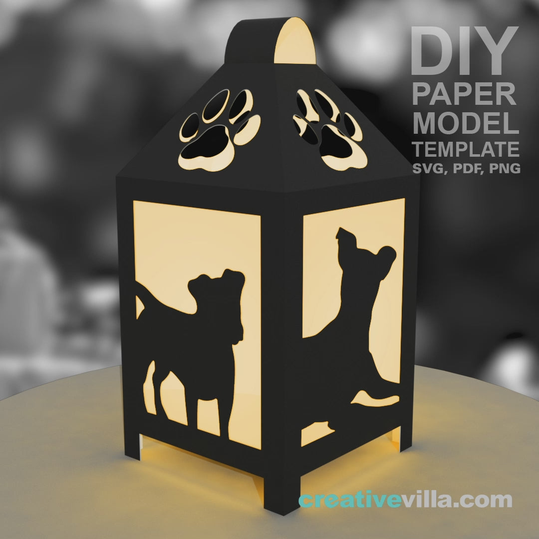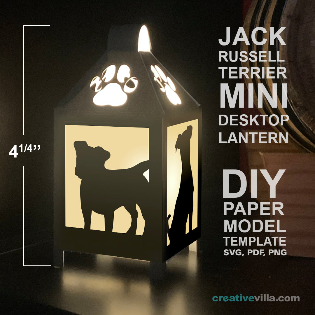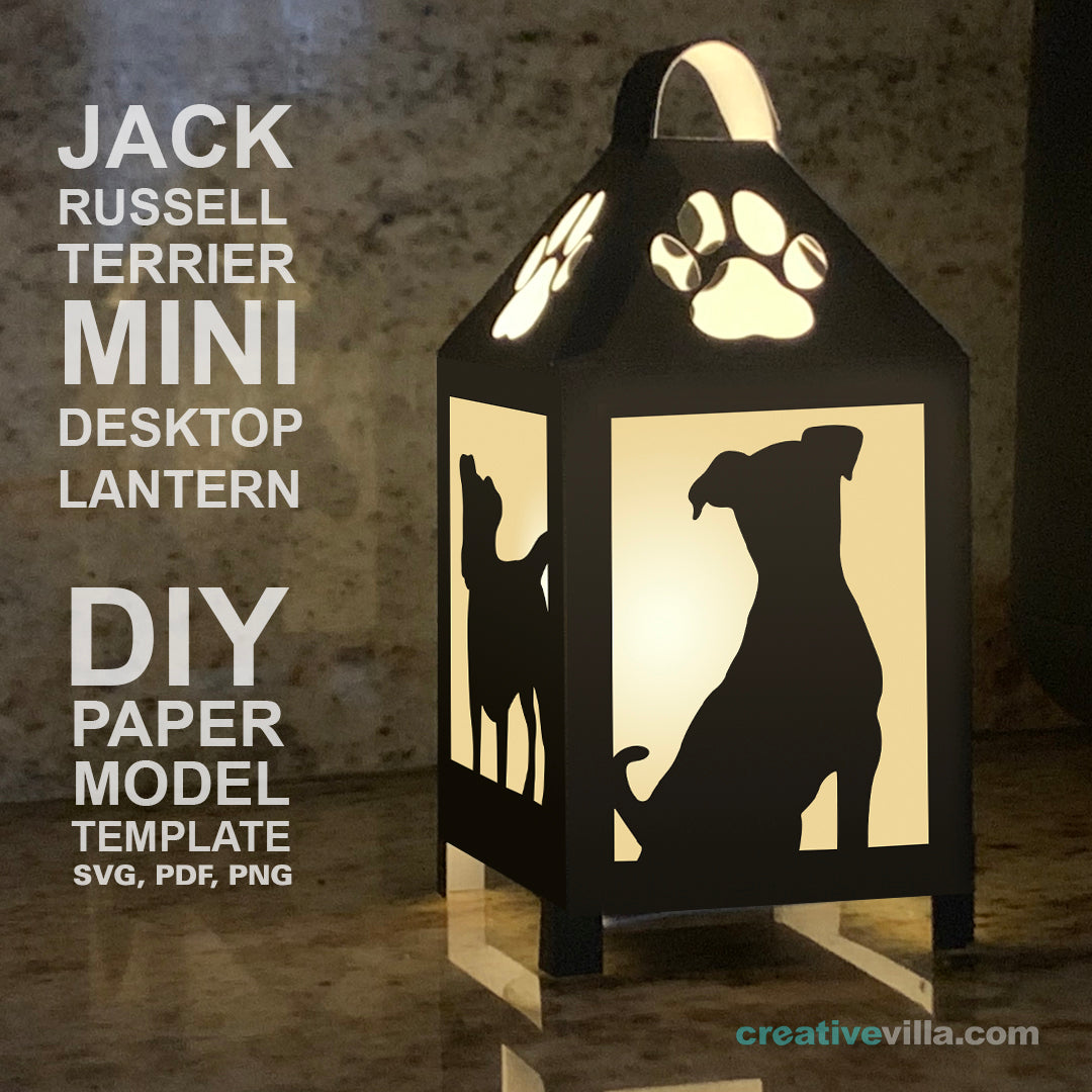 Jack Russell Terrier Dog Mini Desktop Lantern DIY Low Poly Paper Model Template, Cricut Paper Craft