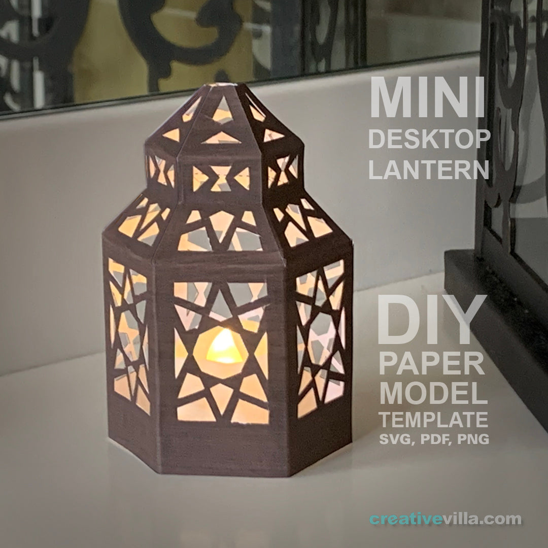 Mini Desktop Lantern #1 DIY Low Poly Paper Model Template, Paper Craft