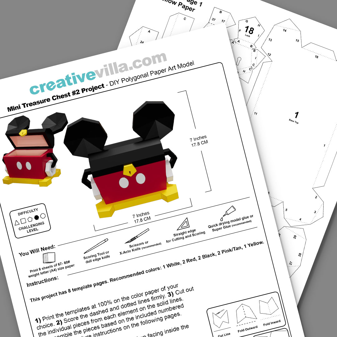 Mini Treasure Chest #2 - DIY Polygonal Paper Art Model Template, Paper Craft