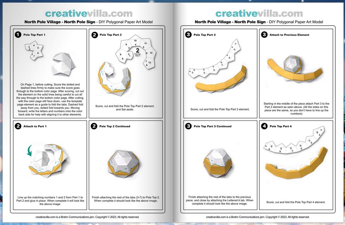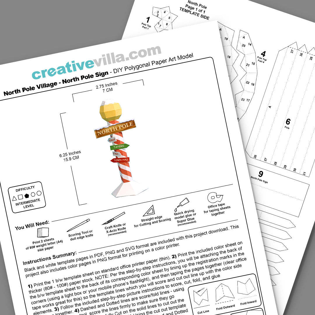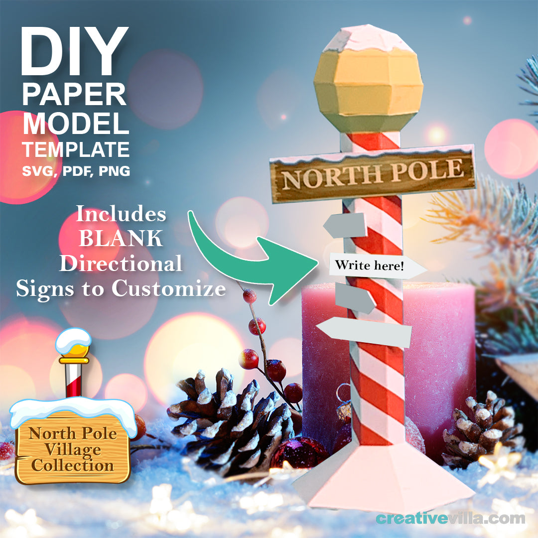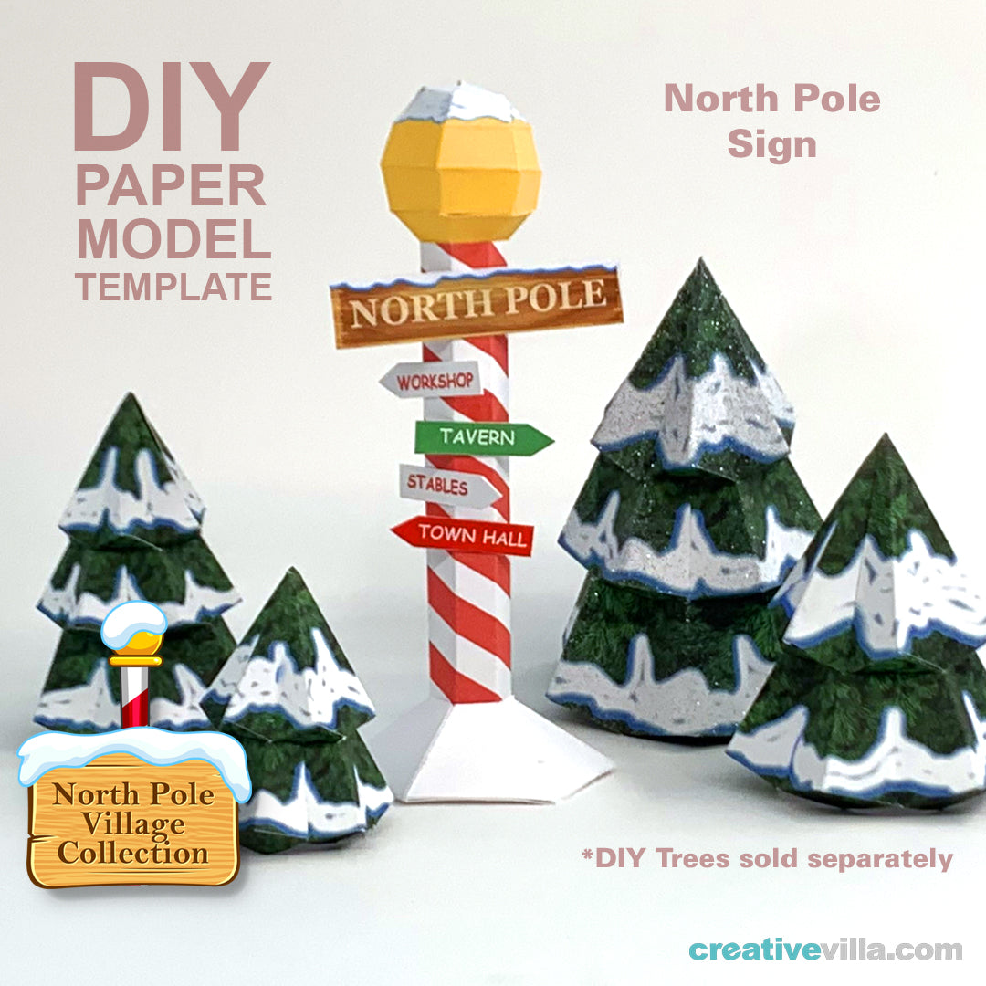 North Pole Village - North Pole Sign - DIY Polygonal Paper Art Model Template, Paper Craft
