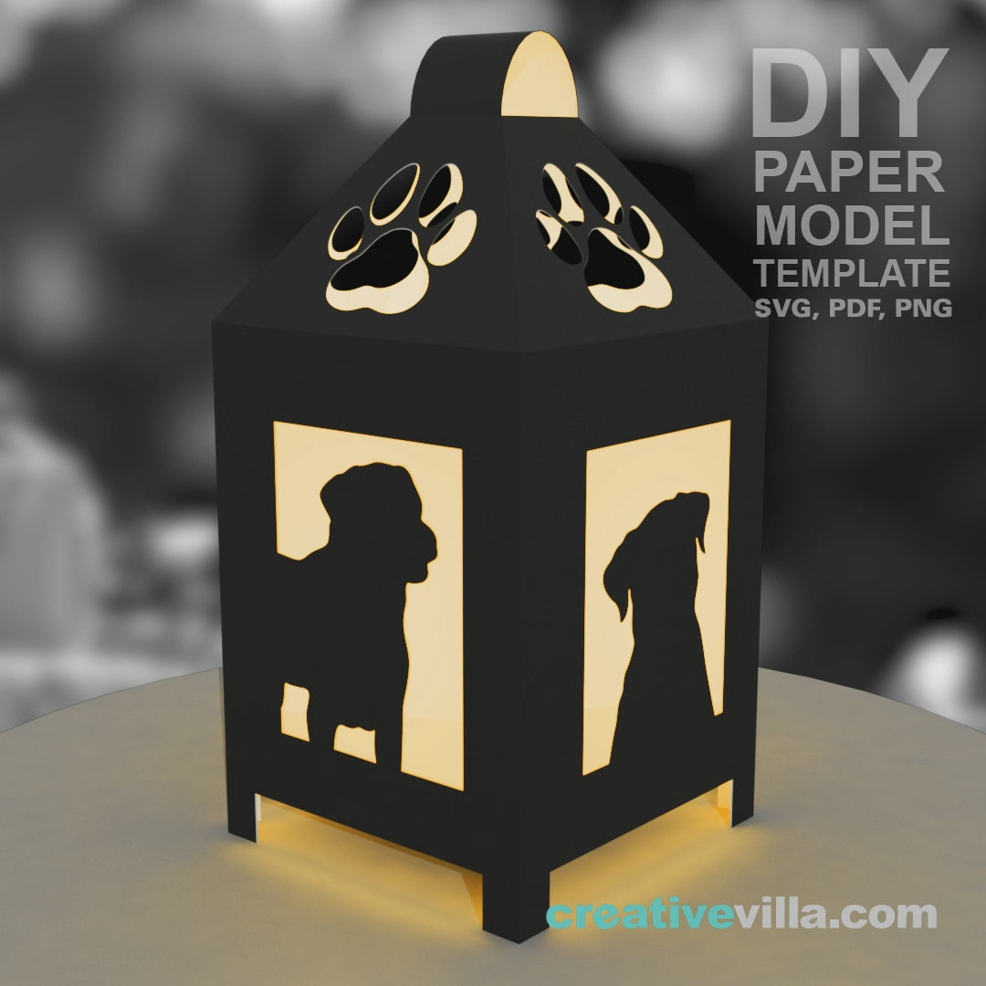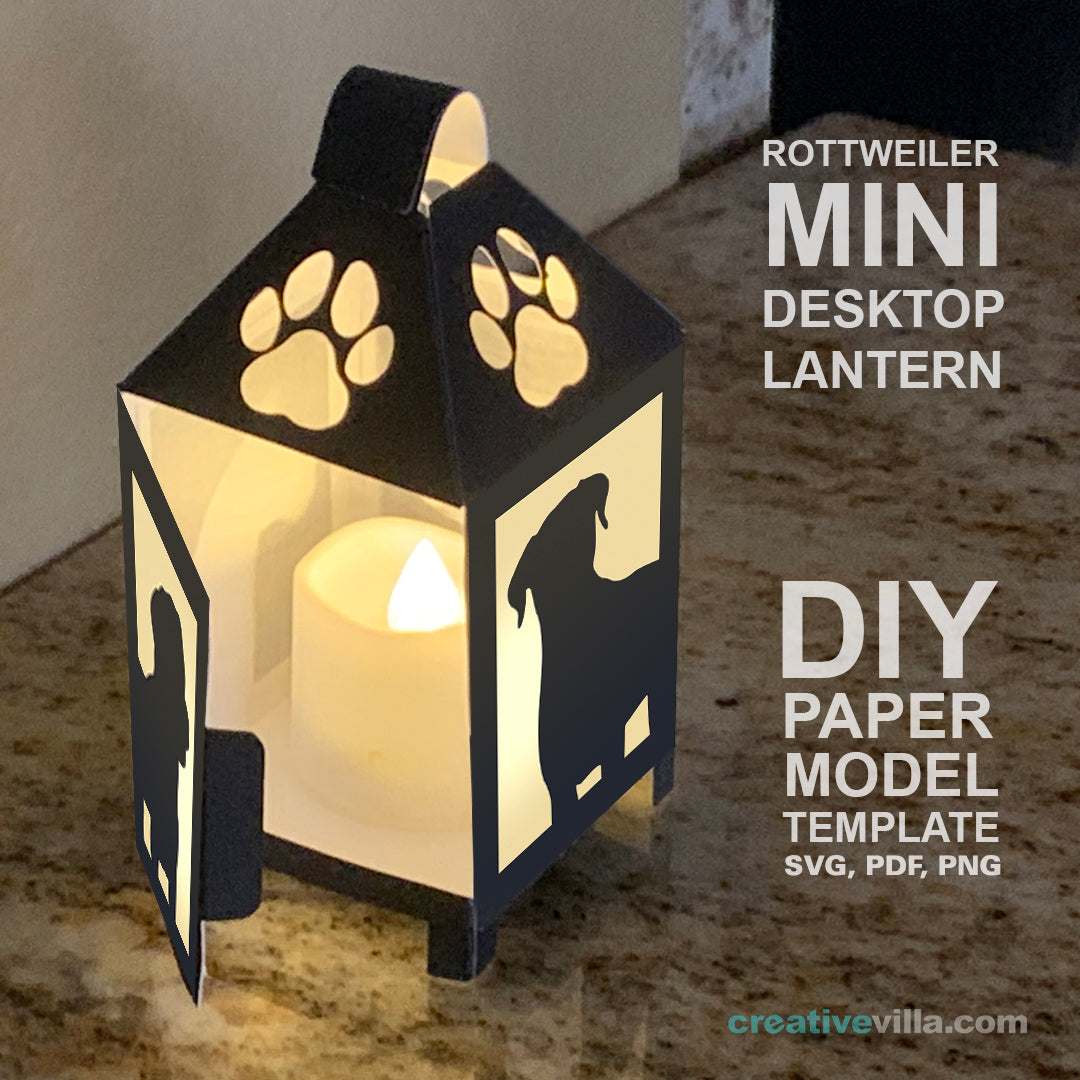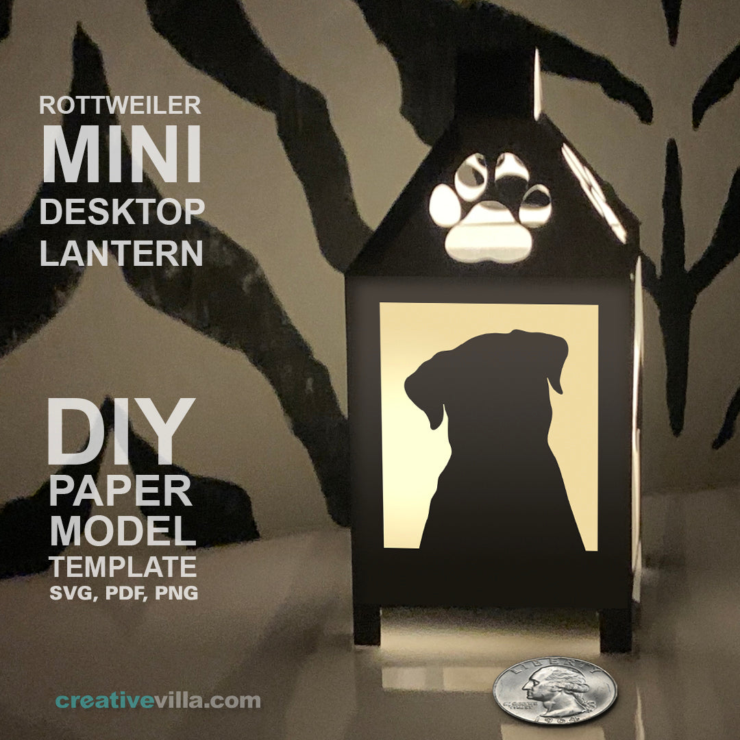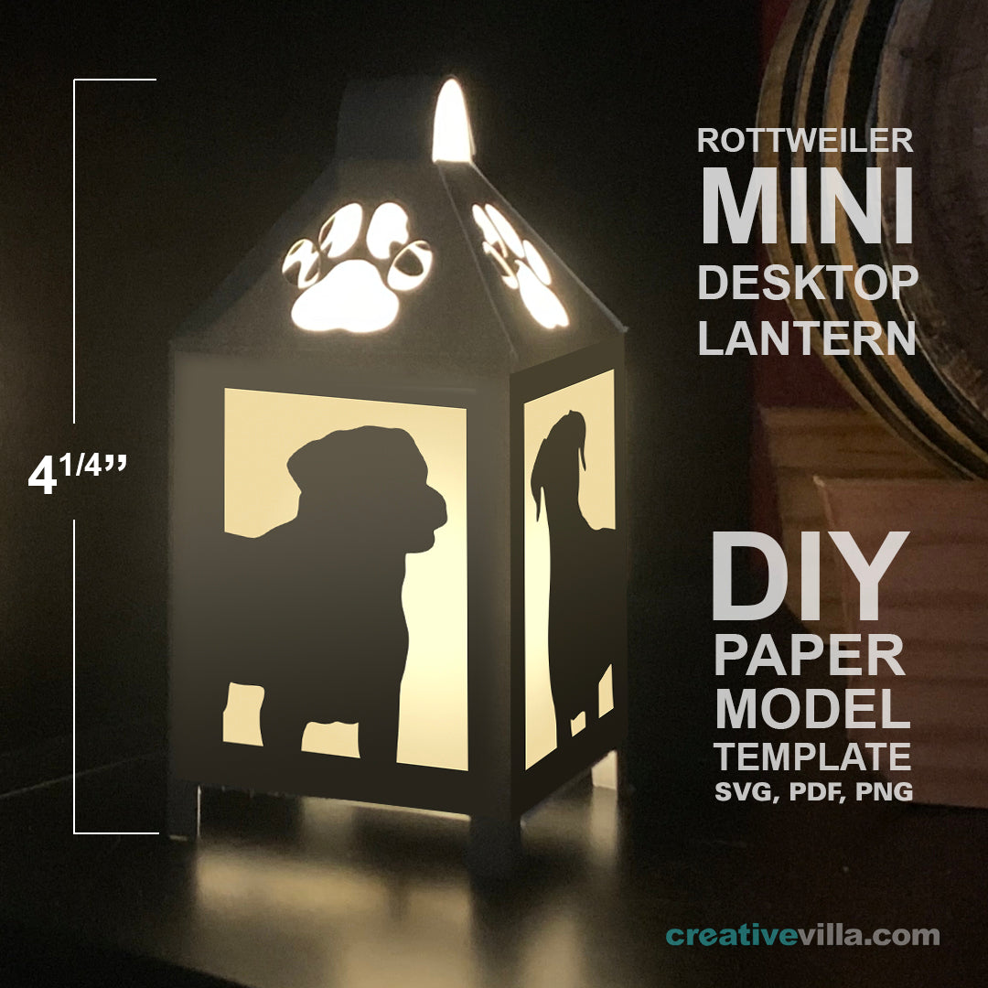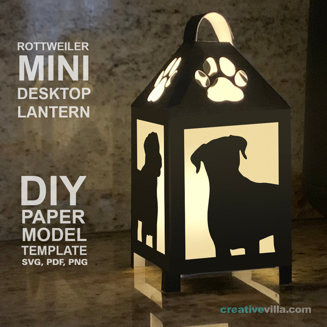 Rottweiler Dog Mini Desktop Lantern DIY Low Poly Paper Model Template, Cricut Paper Craft