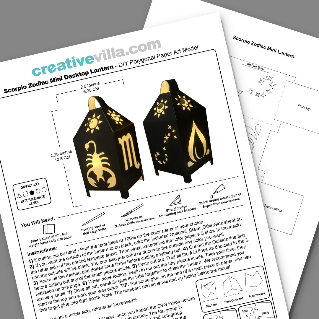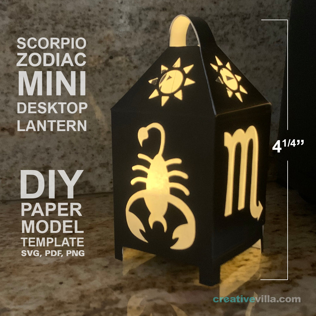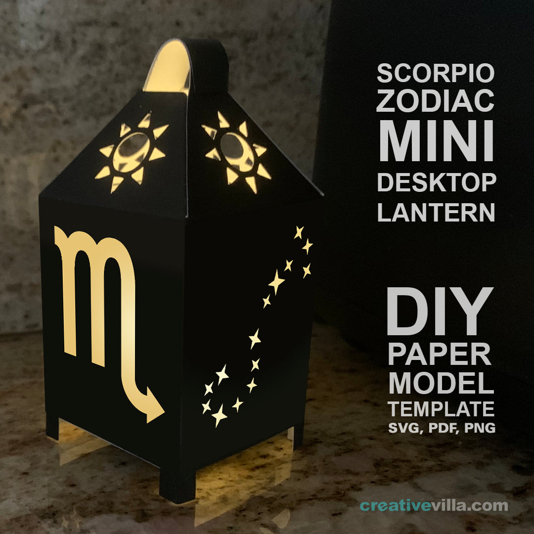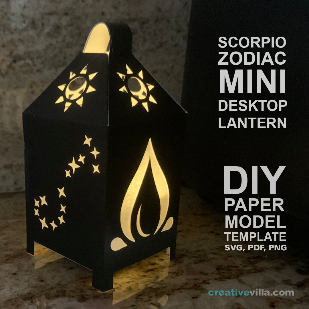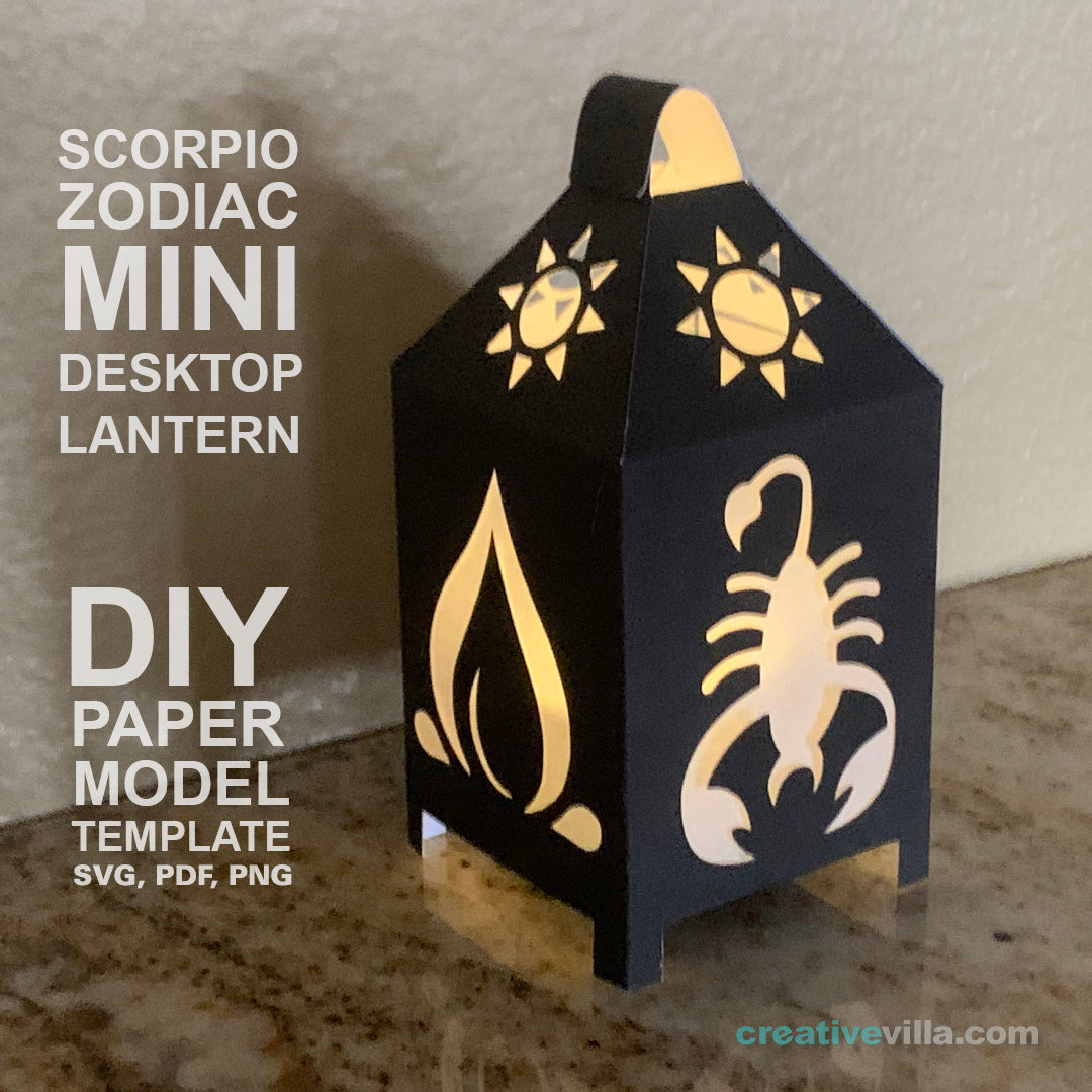 Scorpio Zodiac Mini Desktop Lantern DIY Low Poly Paper Model Template, Cricut Paper Craft