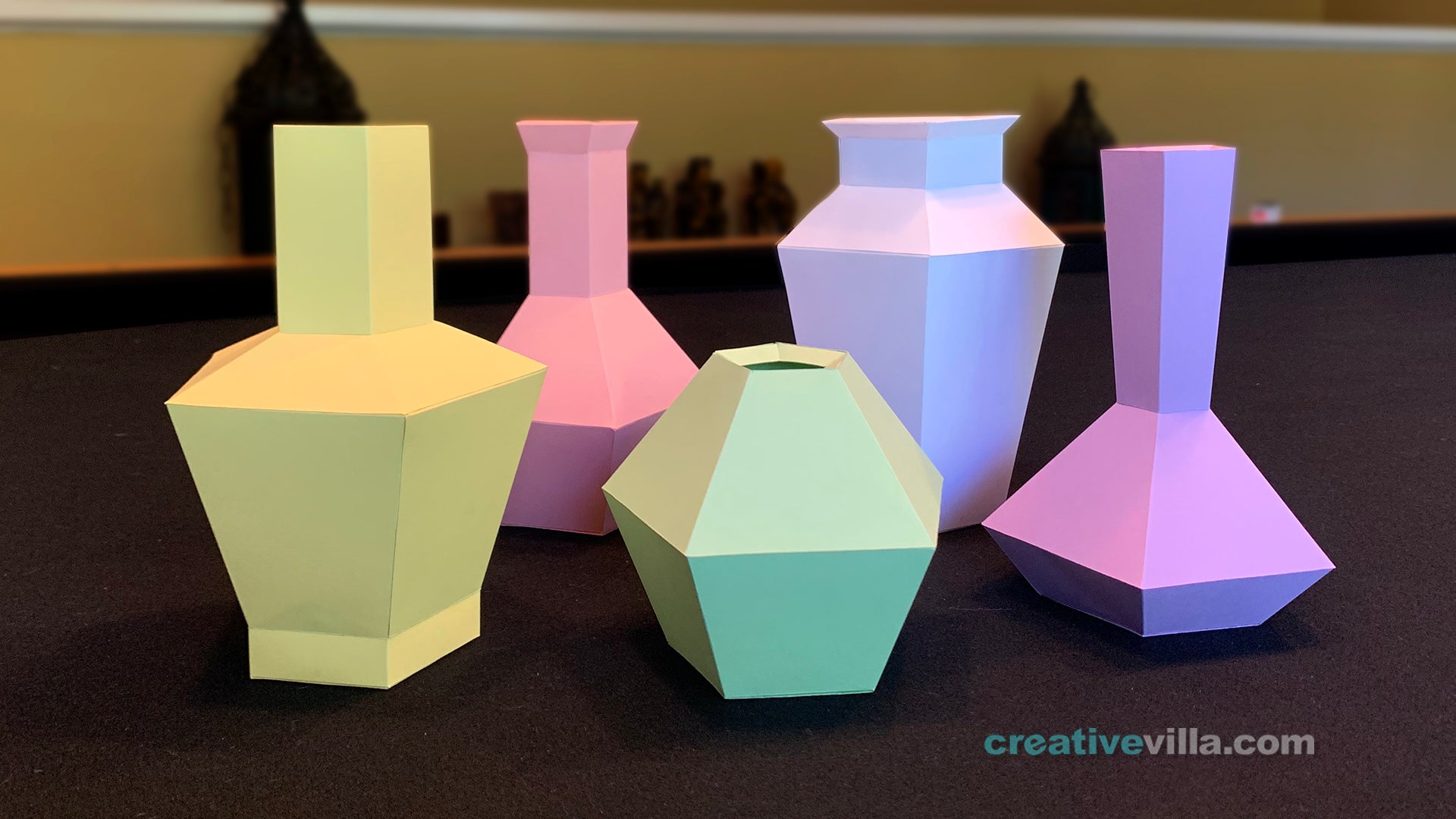 Simple Vases Collection #2 (sets 6-10) DIY Low Poly Paper Model Template, Paper Craft