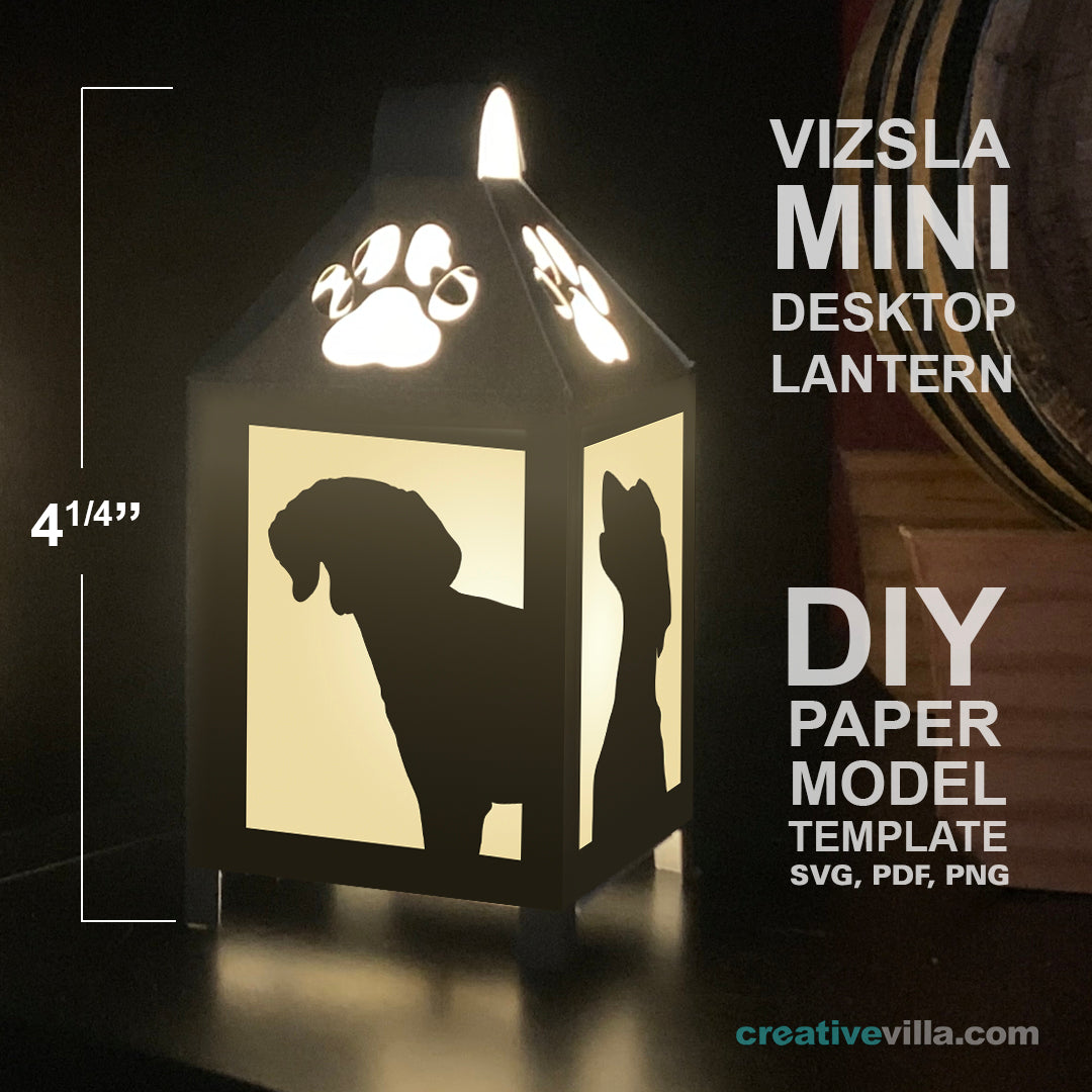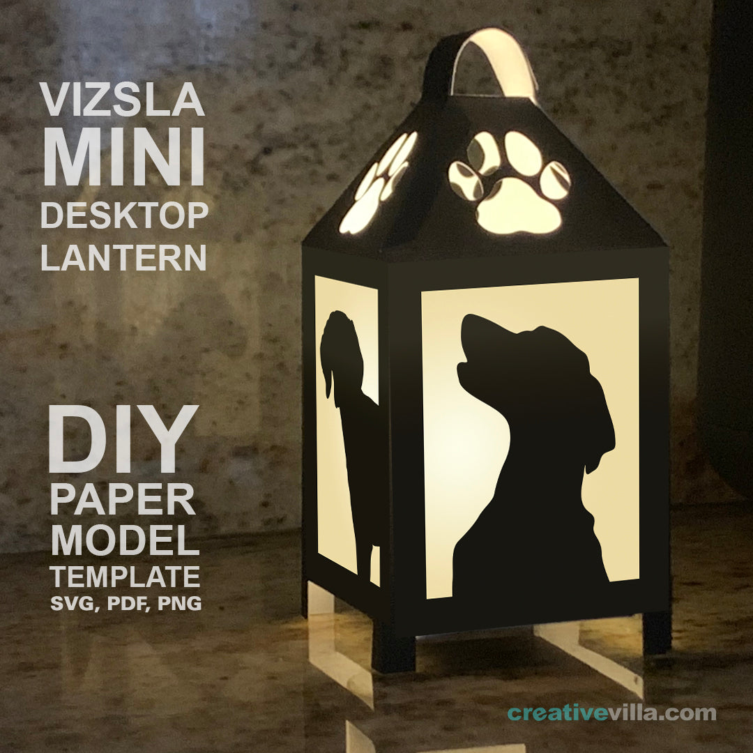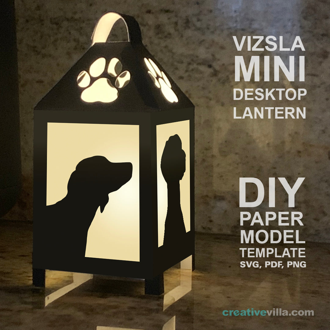 Vizsla Mini Desktop Lantern DIY Low Poly Paper Model Template, Cricut Paper Craft