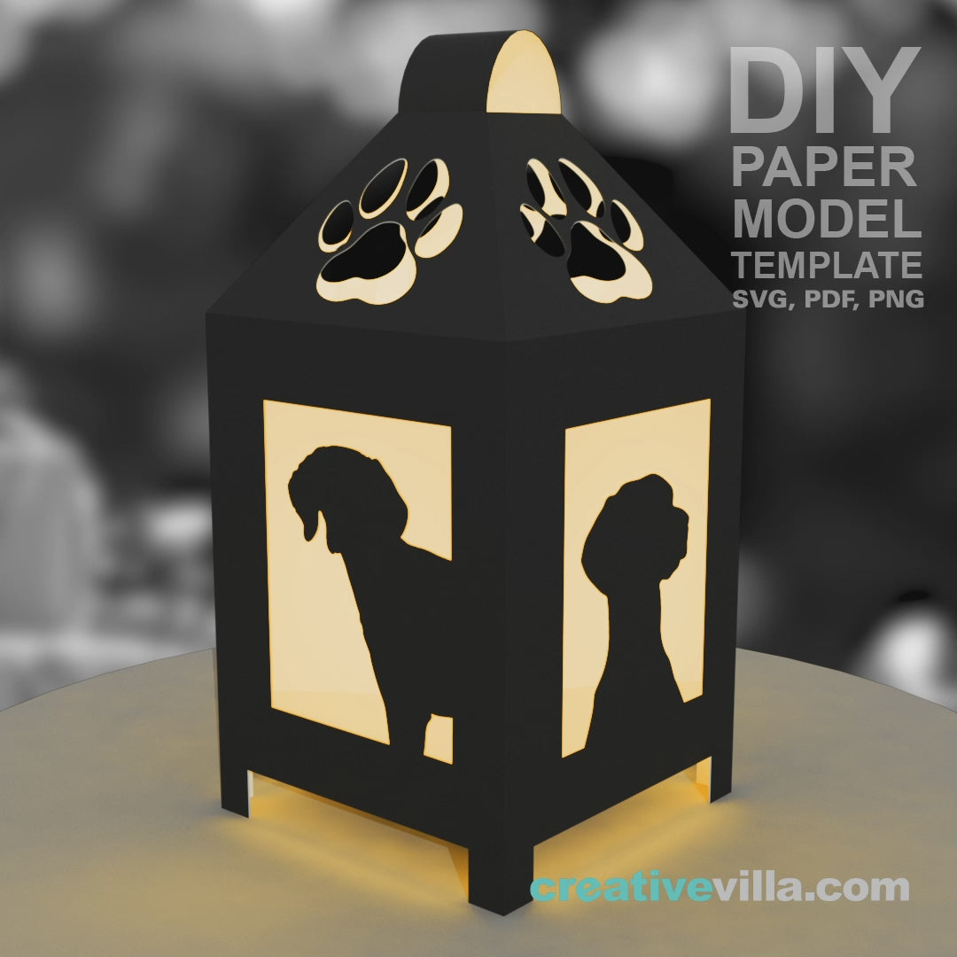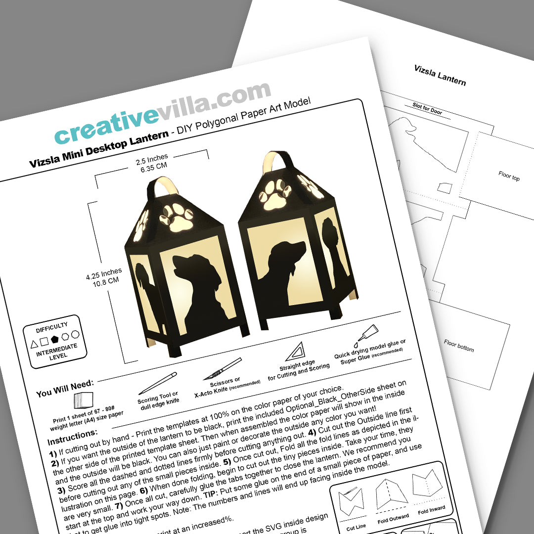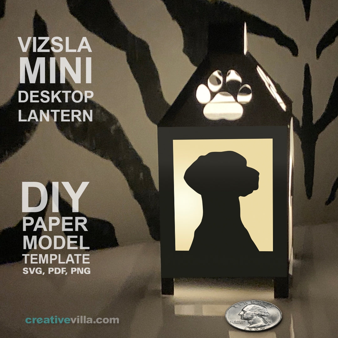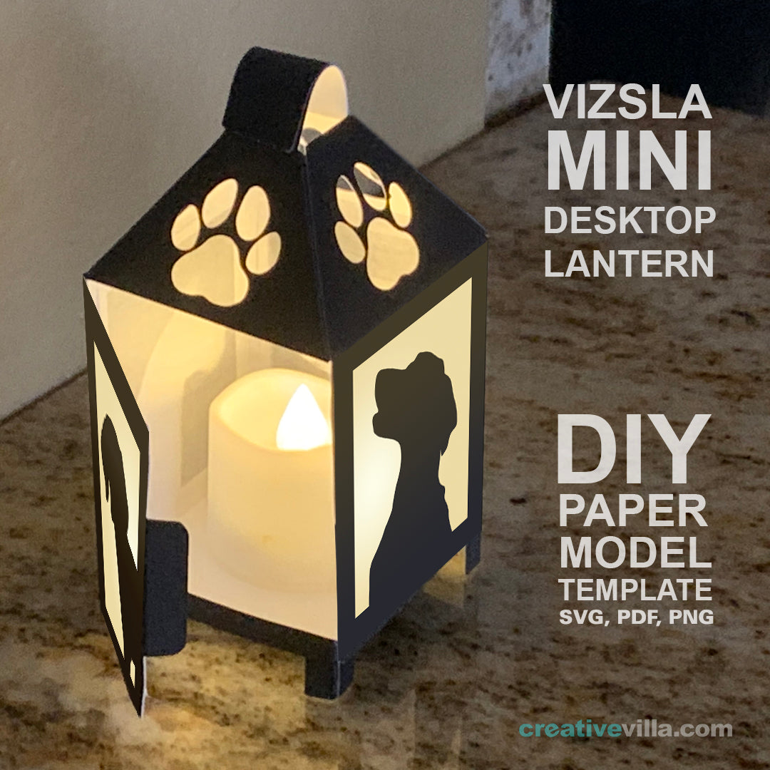 Vizsla Mini Desktop Lantern DIY Low Poly Paper Model Template, Cricut Paper Craft